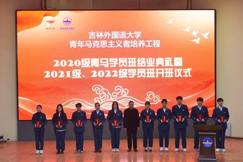 会上,马克思主义学院院长门瑞雪宣读《关于吉林外国语大学青马工程2020级学员班学员结业的决定》《关于表彰吉林外国语大学青马工程2020级学员班优秀学员的决定》。