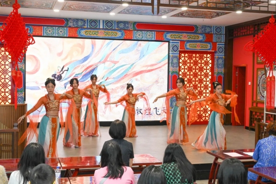 开营仪式上,极具中华文化特色的文艺表演赢得了满堂喝彩。其中,舞蹈《大美敦煌》再现丝路明珠的千年神韵;相声《传统文化》演绎了中华传统习俗与智慧;京剧经典选段《击鼓骂曹》展现了京剧艺术的独特魅力与深厚底蕴。
