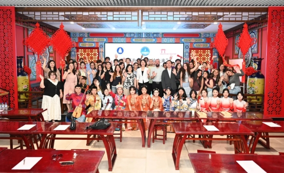 6月23日,“吉外国际研学营” 美国师生团组与埃及师生团组联合开营仪式在地球村中国村举行。来自美国马里兰州贝塞斯达-切维查斯高中的12名师生,以及埃及中国大学的17名师生,将在吉林外国语大学开启汉语学习与中华文化体验之旅。