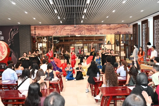 开营仪式上,极具中华文化特色的文艺表演精彩纷呈,中国舞《灯火里的中国》以灵动舞姿勾勒出新时代中国的繁华盛景;马头琴草原歌曲串烧表演以悠扬琴声与高亢歌声演绎草原文化的豪迈与深情;武术表演《武韵风华》则以刚劲有力的招式展现中华武学的神韵,令两国师生沉浸式感受中华文化的多元魅力。