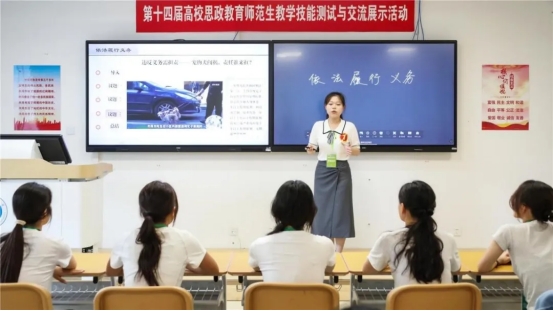 全国高校思政教育师范生教学技能大赛是我国师范教育领域层次高、影响广的重要赛事,旨在提升师范生的教学技能、创新能力和综合素质,促进院校之间的交流与合作。本届大赛共有来自全国97所高校的566名选手参加,包括教学片段设计测试和现场教学技能测试,现场教学技能测试包括说教学设计思路、现场教学技能展示和答辩三个环节构成,全面考察选手的教学综合能力。