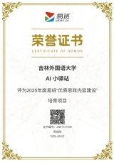 近日,2025年度易班优质思政内容建设支持项目和培育项目名单公布。人工智能学院“AI小驿站”、国际关系学院“明法思政”以及“吉林外国语大学学生处”公众号获评“优质思政内容建设培育项目”。其中,“吉林外国语大学学生处”公众号连续两年获此殊荣。