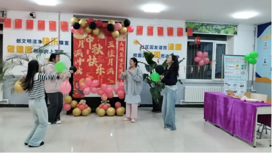 活动期间,学校为留校同学精心准备了月饼与新鲜水果,传递节日关怀。各学生社区精心装扮,营造了浓厚的节日氛围。同学们通过歌舞表演、趣味游戏等,与老师们一起共庆佳节。