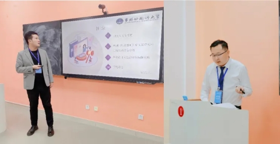 朝鲜语系教师孟庆鑫(左)与2024级朝鲜语笔译专业硕士研究生王天奕(右)在分组论坛上发言