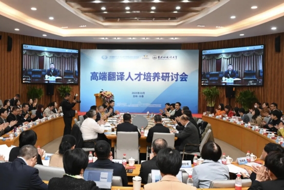 10月13日,2025年高端翻译人才培养研讨会在吉林外国语大学顺利召开。中国外文局、教育部学位管理与研究生教育司、吉林省教育厅领导,全国翻译专业学位研究生教育指导委员会(以下简称“全国翻译教指委”)专家、特邀专家以及翻译博士专业学位(DTI)授权点及申请自设DTI的多所院校代表出席会议。