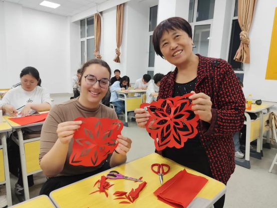 满族剪纸非遗传承人李艳霞指导留学生创作剪纸作品