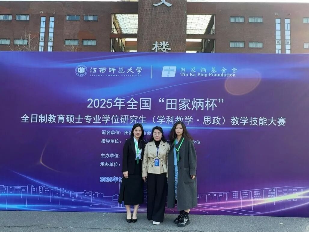 近日,2025年全国“田家炳杯”全日制教育硕士专业学位研究生(学科教学·思政)教学技能大赛在江西落下帷幕。马克思主义学院2024级学科教学(思政)专业硕士研究生许天娇荣获三等奖,邸蒙荣获优秀教学设计奖。