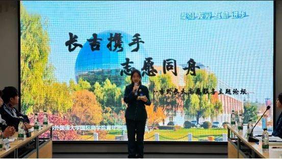 本次活动旨在推动双方在志愿服务领域实现资源共享与协同发展,国际商学院学工办主任白露、长春大学数学与统计学院学工办主任伊斯坎代尔·图尔荪先后致辞,一致表示将共建志愿服务合作体系,进一步提升青年社会责任感。