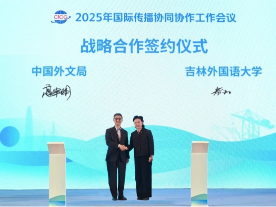 12月16日,在浙江宁波举行的“2025年国际传播协同协作工作会议”上,吉林外国语大学与中国外文局正式签署战略合作协议。吉林外国语大学校长秦和教授、中国外文局总编辑高岸明分别代表双方签署协议。