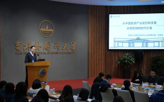 当天下午,大会举行了“融合创新与产业升级:冰雪文化资源的价值跃迁与产业高质量发展驱动路径”的专题研讨。来自飞视雪野(北京)体育发展有限公司董志刚、吉林师范大学石丹、通化师范学院徐昌贵、白城师范学院杨佳及吉林外国语大学杨旭等行业专家与青年学者,从冰雪体育旅游发展、智慧旅游体验、发展路径创新、区域经济辐射、目的地形象感知等多个维度分享了前沿实践与思考,展开了热烈而富有建设性的对话。
