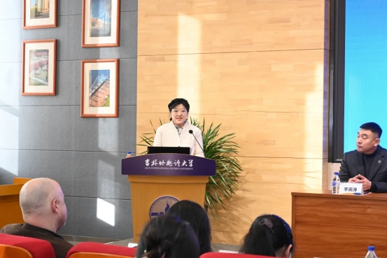 学员代表刘彦辰在发言中分享了培训期间的成长与感悟。她表示,吉林外国语大学精心设计的课程体系、雄厚的外语教学资源及老师们专业细致的指导,让大家在中医专业外语表达、双语教学技巧等方面实现了质的飞跃,未来将把所学知识运用到教学实践中,为中医药文化的国际传播贡献力量。