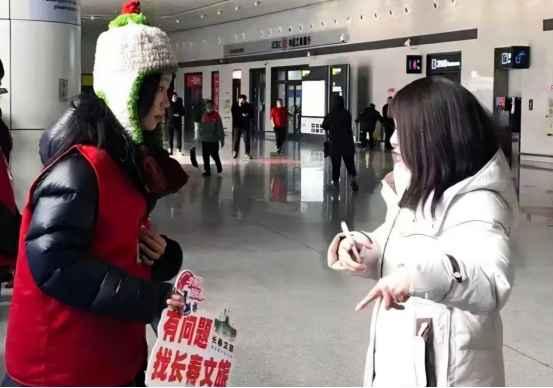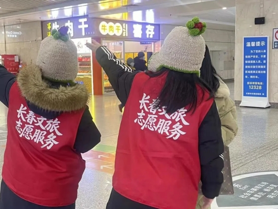 近日,为保障冰雪旅游旺季旅客出行体验,长春文旅局联动各高校组建文旅志愿者队伍。吉林外国语大学选派30名学生志愿者投身长春站、长春西站、龙嘉国际机场等重点交通枢纽开展志愿服务活动,用专业和热情为春城文旅添温增彩。