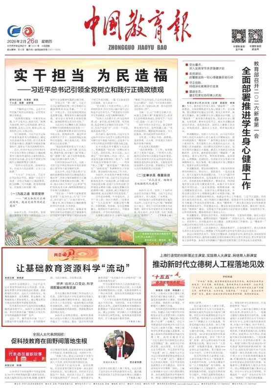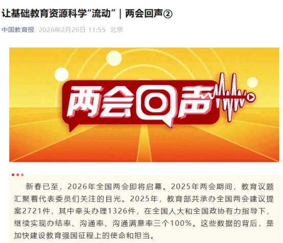 2月26日,《中国教育报》第1版以《让基础教育资源科学“流动”》为题,报道了教育部落实全国人大代表秦和校长的建议。《吉林日报》彩练新闻予以转发。