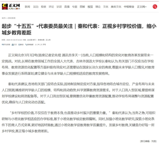“乡村学校的价值,不仅仅在于教育本身,也是推动乡村振兴的重要力量。”秦和代表认为,当务之急,可组织研制与小班化教学相适应的办学标准,基于小班化教学核定教师编制。同时,加强小班化教学研究,探索小班化条件下的育人方式变革,更好地因材施教,通过小班化教学促教育教学质量提升。发展乡村教育,关键是办好每一所乡村学校,真正缩小城乡教育差距。