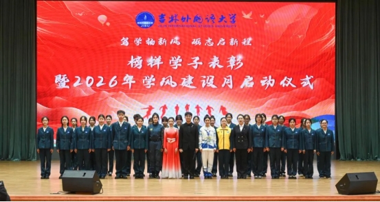 深化榜样引领,夯实学风建设,3月18日,“笃学扬新风,砺志启新程”吉林外国语大学榜样学子表彰暨2026年学风建设月启动仪式在世桥大厦报告厅举行。副校长杨春梅、校党委副书记潘正岩出席。学生处处长任雪艳主持。各学院党总支书记及学生代表参加会议。