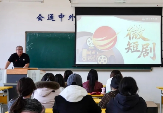 讲座中,杜宁介绍了国家对微短剧的相关政策和行业发展态势,着重阐释了吉林省对微短剧的创作要求和主题方向,为同学们进行微短剧创作提供了重要指导。周禹霖围绕微短剧剧本创作,从故事模型到台词写作,全方位解析了微短剧剧本的创作要点和写作经验。