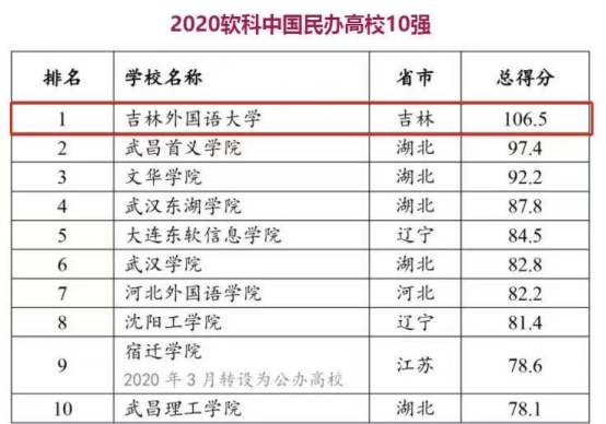 在软科中国民办高校总榜排名中