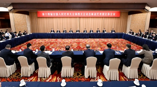 3月3日,出席十四届全国人大四次会议的吉林省代表团在驻地召开全体会议
