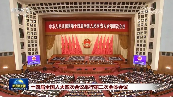 3月9日,十四届全国人大四次会议第二次全体会议在北京人民大会堂举行。(截屏)